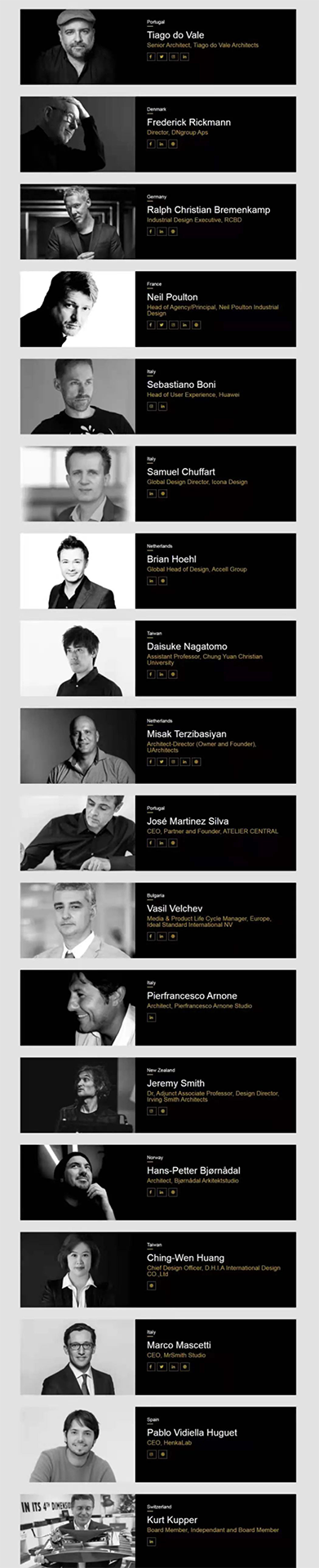 该奖项面向建筑、室内、产品、景观、灯光、包装、时尚等广泛领域征集设计作品。作为一项国际比赛,其旨在表彰拥有各种专业知识的设计专业人士,为拥有精湛工艺转变范式的设计师提供帮助,推动全球设计产业的发展更上一层楼。