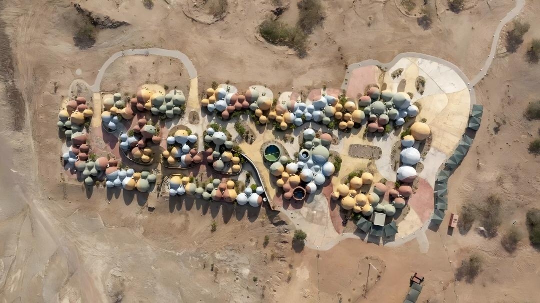 设施。其设计灵感来源于当地土壤的色彩与颗粒大小,形成约 200 座大小各异的穹顶,呼应传统水窖的